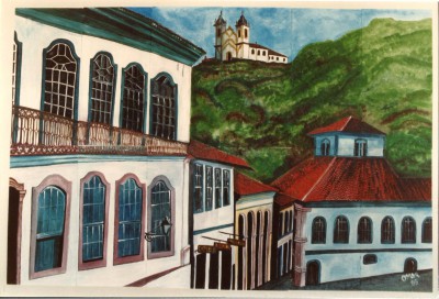 Este painel eu fiz para uma festa mineira na Johnson & Johnson. Representa o Largo da Casa do Conto, em Ouro Preto - MG.
