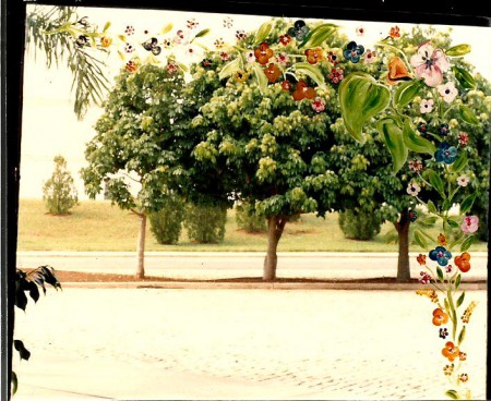 Como o espaço que tinha para produzir a obra era muito pequeno e só cabiam duas placas justapostas, tive que pintar duas a duas, só vendo a pintura acabada quando colocada no local de destino.